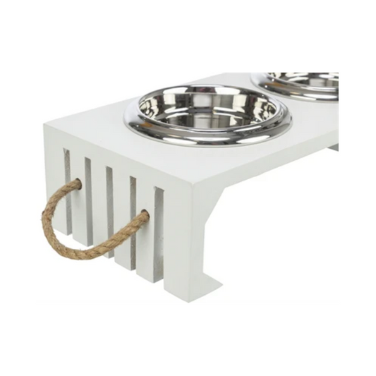Trixie Be Nordic Set Food Bowl / Water Bowl Wood / Stainless Steel White