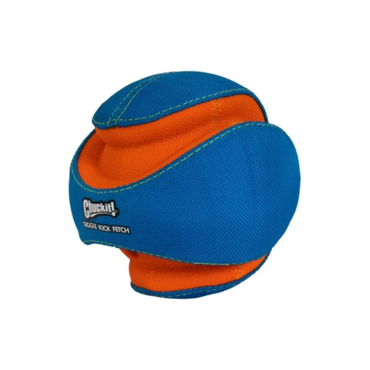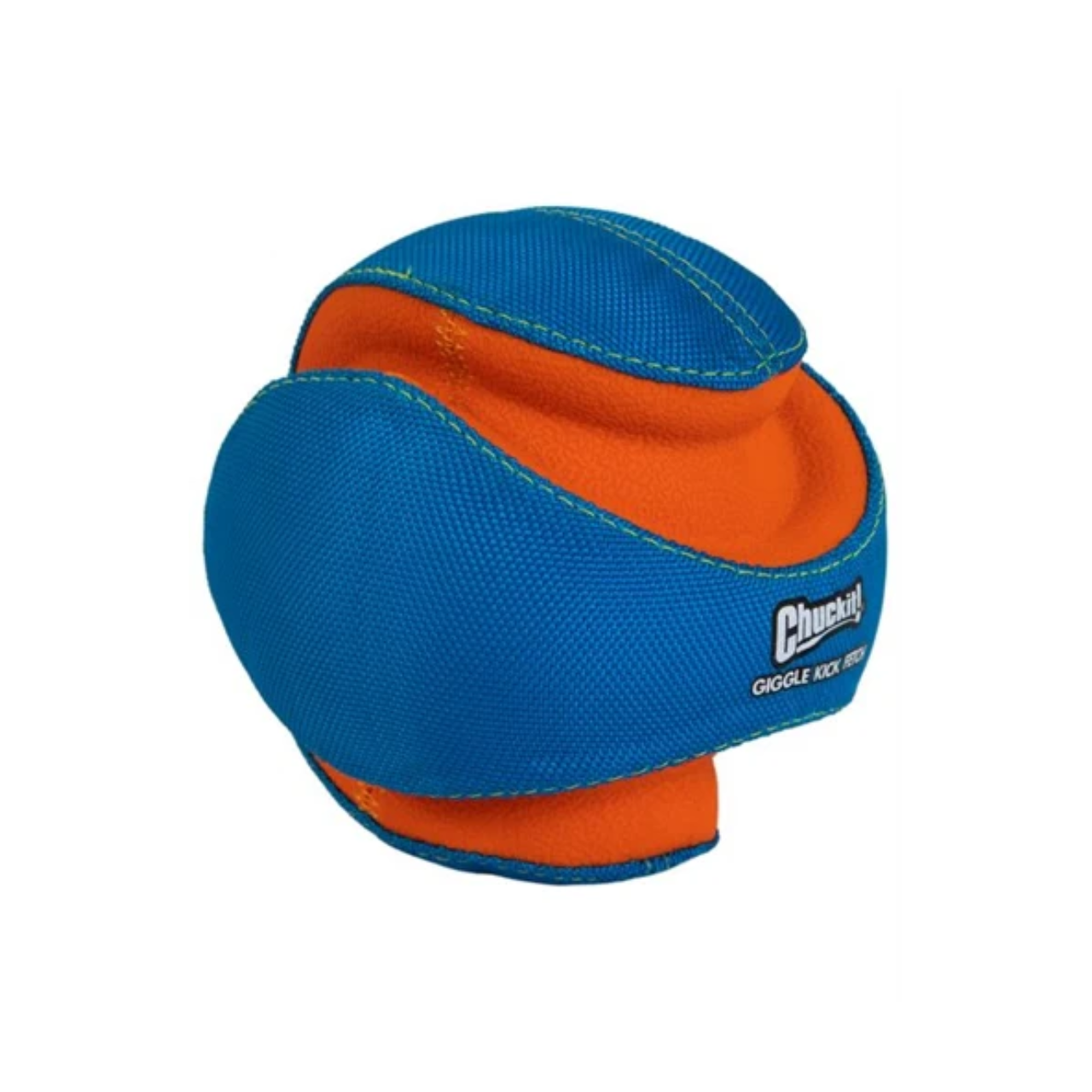 The Chuckit Giggle Kick Fetch is a ball that offers double the fun! As it rolls, the ball makes a cheerful laughing sound ("giggle"), making it extra appealing to curious dogs. This makes it easy for even dogs with poor eyesight to follow this toy.