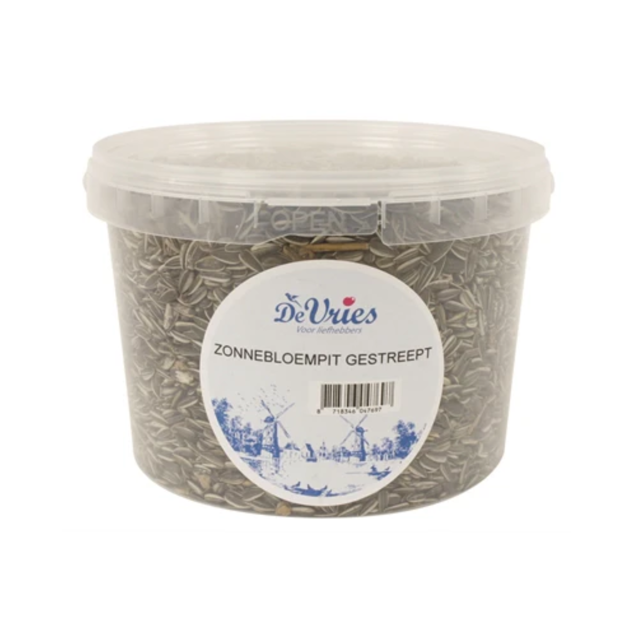 De Vries Striped Sunflower Seeds is a natural and nutritious supplementary bird food. These 100% pure sunflower seeds are especially popular with large parakeets and (dwarf) parrots. They are ideal as a reward during training or as a tasty addition to their daily diet.