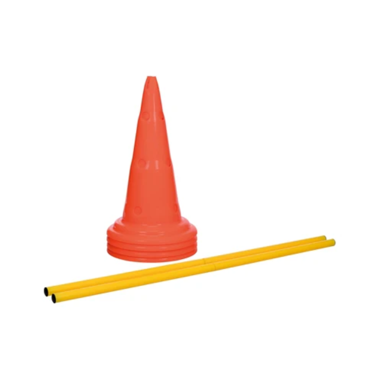 The set includes six cones with various inserts for different hurdle and slalom configurations. The cones are height-adjustable, making the set suitable for dogs of all sizes and ages. The set comes with a manual with helpful tips for optimal training.