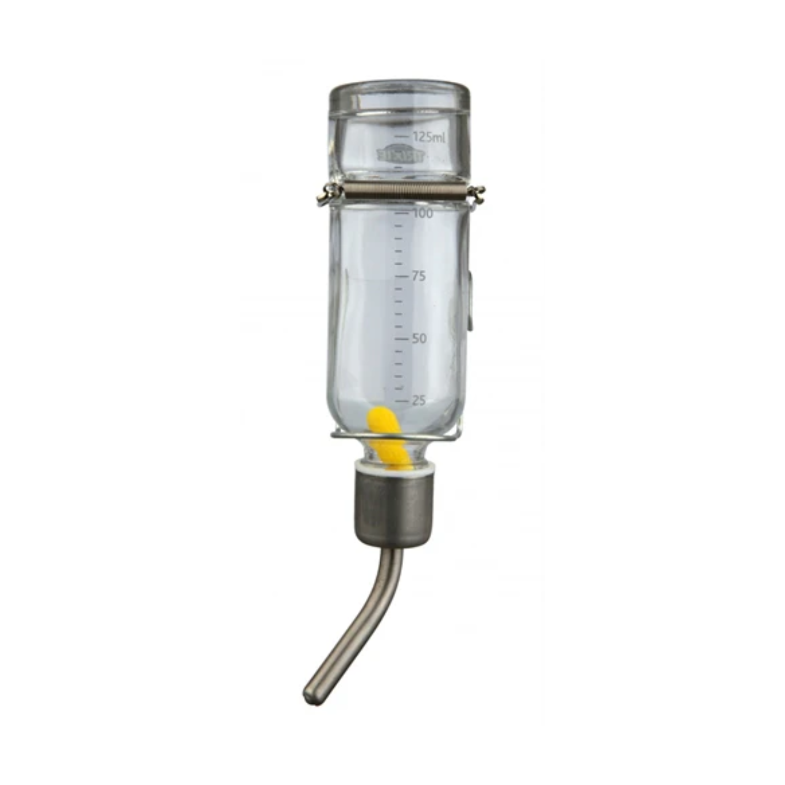 The Trixie Glass Drinking Bottle is a luxurious water bottle, specially designed for medium-sized rodents like guinea pigs . The sturdy metal spout is bite-resistant, while the built-in float shows how much water is left in the bottle. Thanks to the ball mechanism, the bottle won't leak .