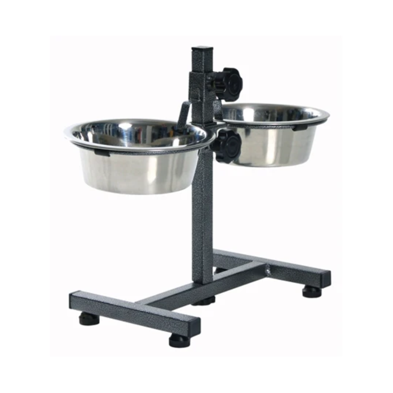 The Trixie Feeding Stand is a practical and sturdy solution for feeding your dog. It comes with two 15cm diameter stainless steel food or water bowls and features an H-shaped metal frame with a hammered-effect powder coating.